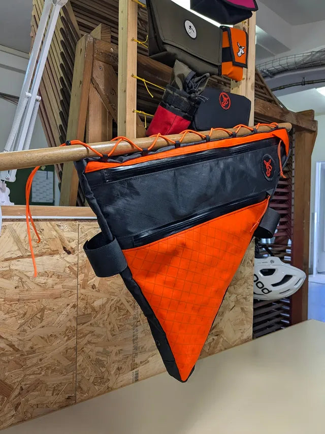 Wie es der Name sagt: eine Rahmentasche, welche den Rahmen deines Fahrrades vollständig ausfüllt. Wahrscheinlich die praktischste Tasche für dein nächste bikepacking Abenteuer, massgeschneidert für dich und dein Fahrrad.