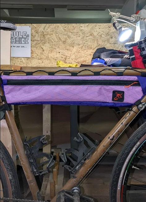 Wie es der Name sagt: eine Rahmentasche, welche den Rahmen deines Fahrrades halb ausfüllt, befestigt am Oberrohr. Wahrscheinlich die praktischste Tasche für dein nächste bikepacking Abenteuer und auch für deine täglichen Fahrten, massgeschneidert für dich und dein Fahrrad.