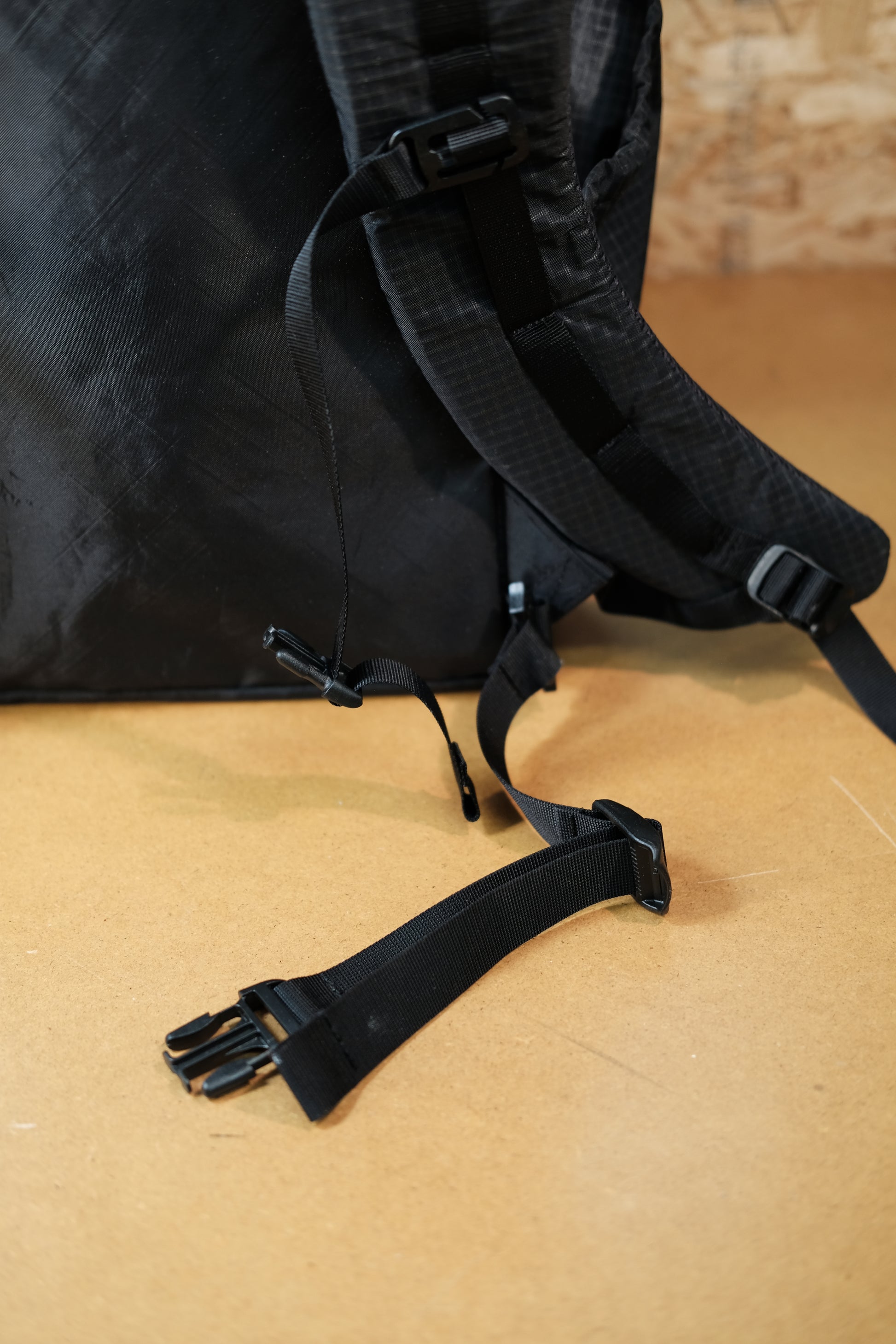 Das Rolltop lässt sich oben verschliessen. Für deine Isomatte oder Jacke und auch zum komprimieren kommt obendrauf noch ein einfacher Gurt.