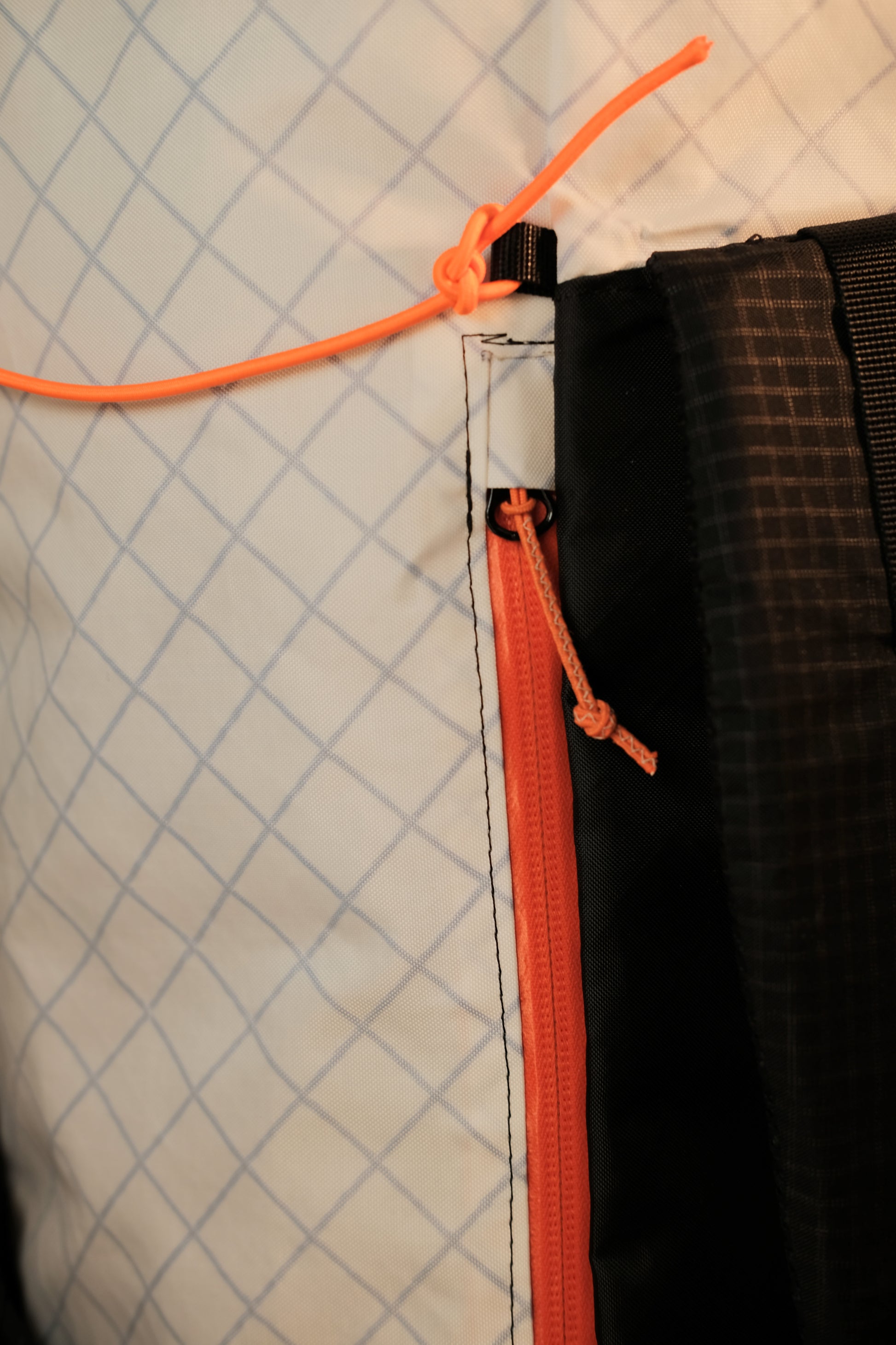 Für alles das schnell erreichbar sein muss, hat es zwei Seitenfächer und ein Frontmesh - gefertigt auf Ultrastretch. Damit du den Rucksack nicht immer komplett öffnen musst, befindets sich auf der rechten Seite noch ein wasserdichter Reissverschluss.